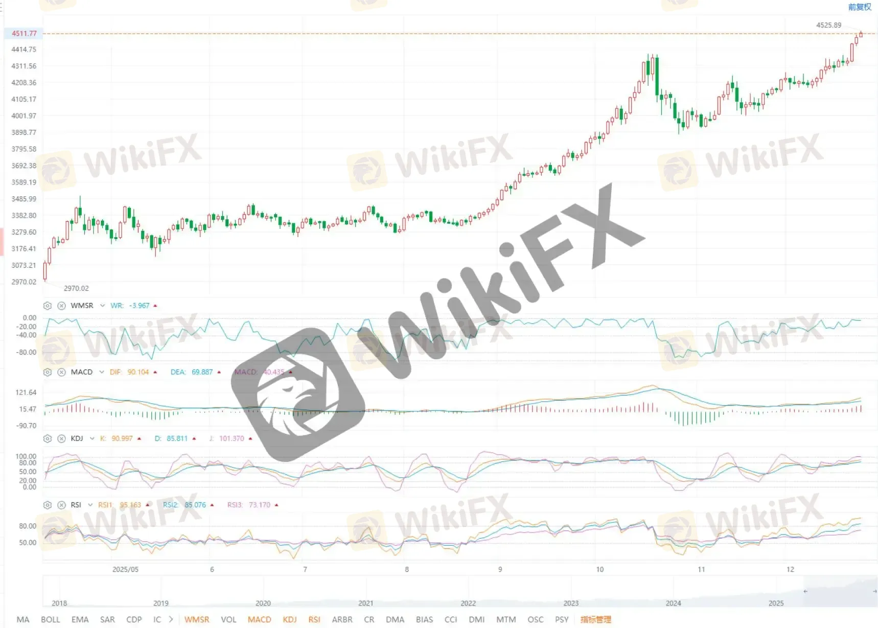 According to ETO Markets monitoring, on Tuesday, December 23, precious metals extended their powerful rally. Spot gold rose around 0.8% and briefly touched USD 4,497.55 per ounce, setting a new record high.