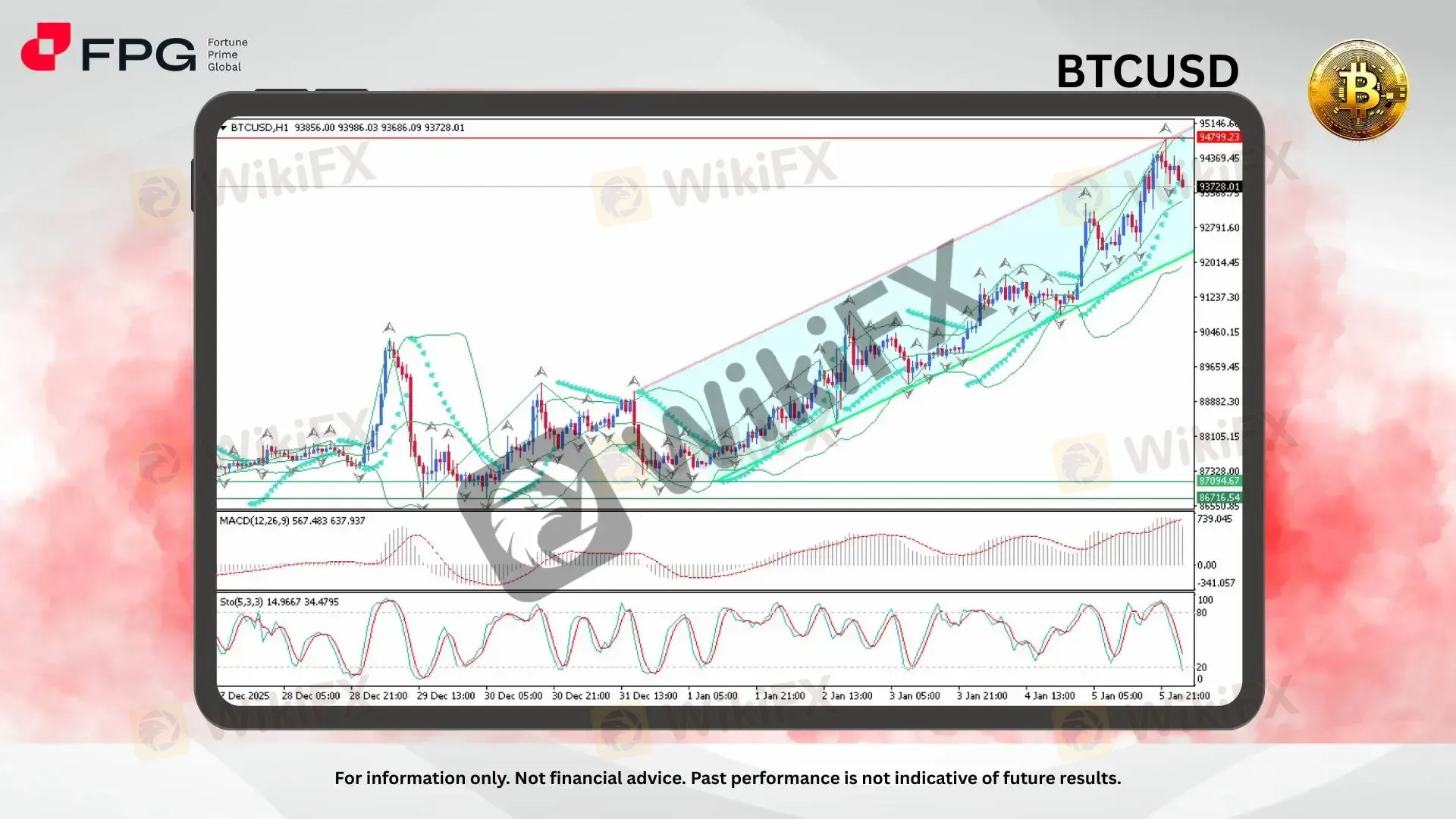 1. Current Position: BTCUSD is trading around 93,728, still holding within the bullish channel structure.