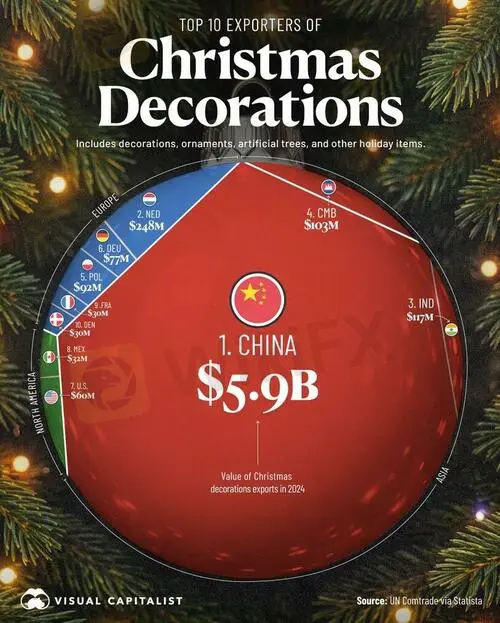 This graphic, via Visual Capitalist's Niccolo Conte, highlights the worlds largest exporters of Christmas decorations in 2024.