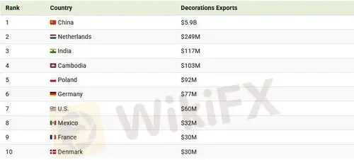 The Netherlands ranks second, exporting roughly $249 million in Christmas decorations. While small compared to China, the country acts as a key logistics and re-export hub within Europe.