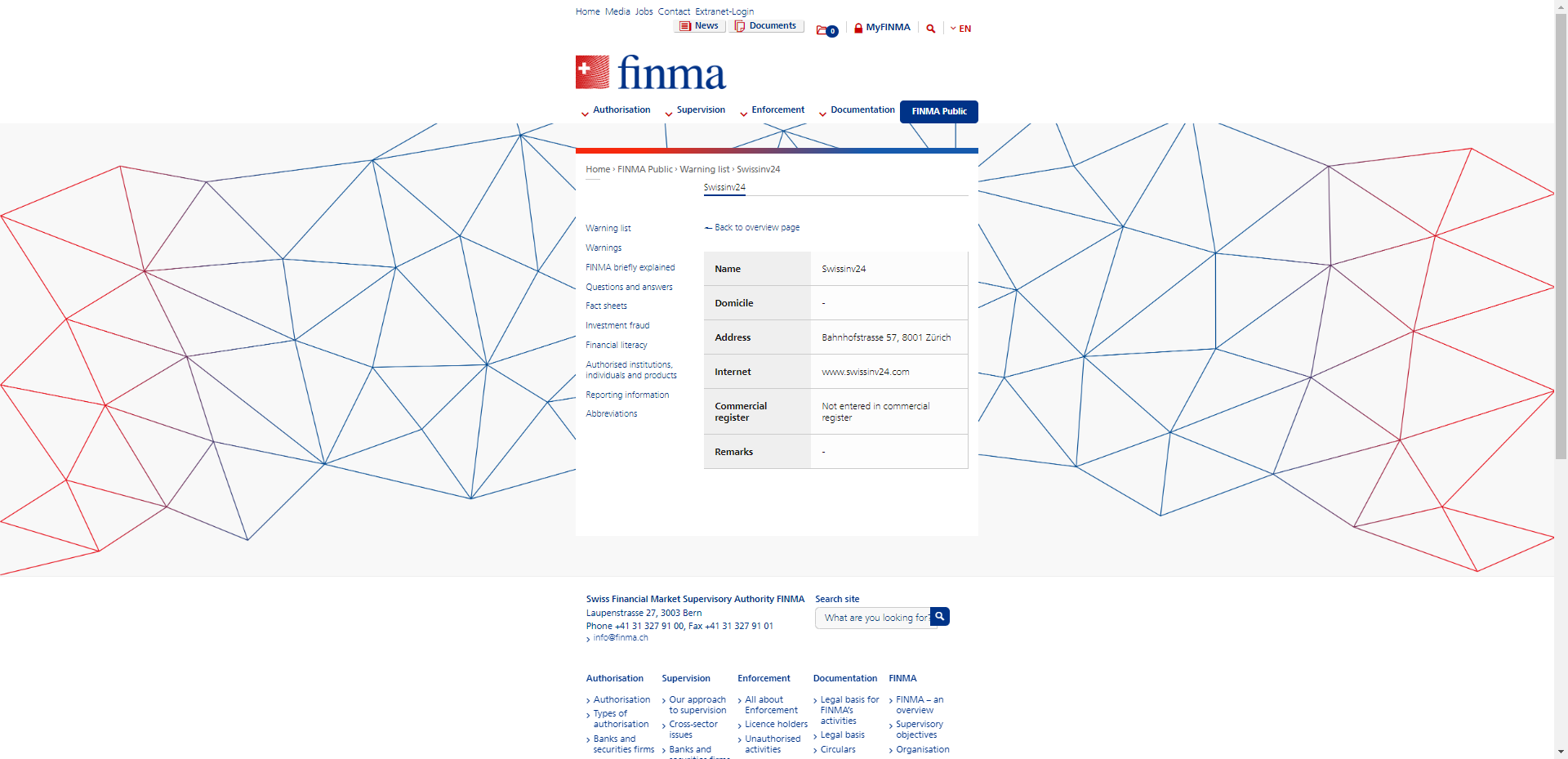 Warning list of unauthorised companies and individuals Warning List - Swissinv24