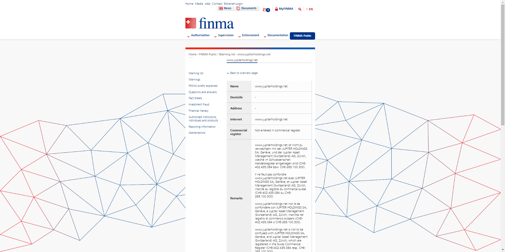 Warning list of unauthorised companies and individuals Warning List - www.jupiterholdings.net