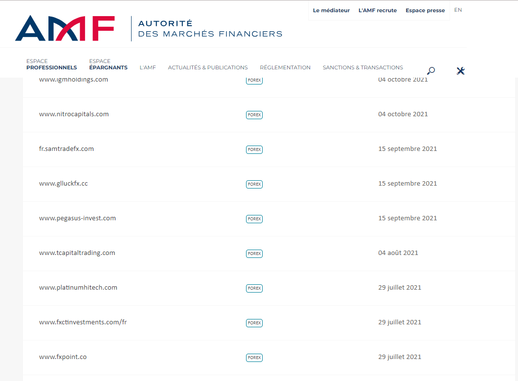 This is a list of the Autorité des Marchés Financiers (AMF) blacklisted companies or websites, warnings and/or usurpations of regulated companies.