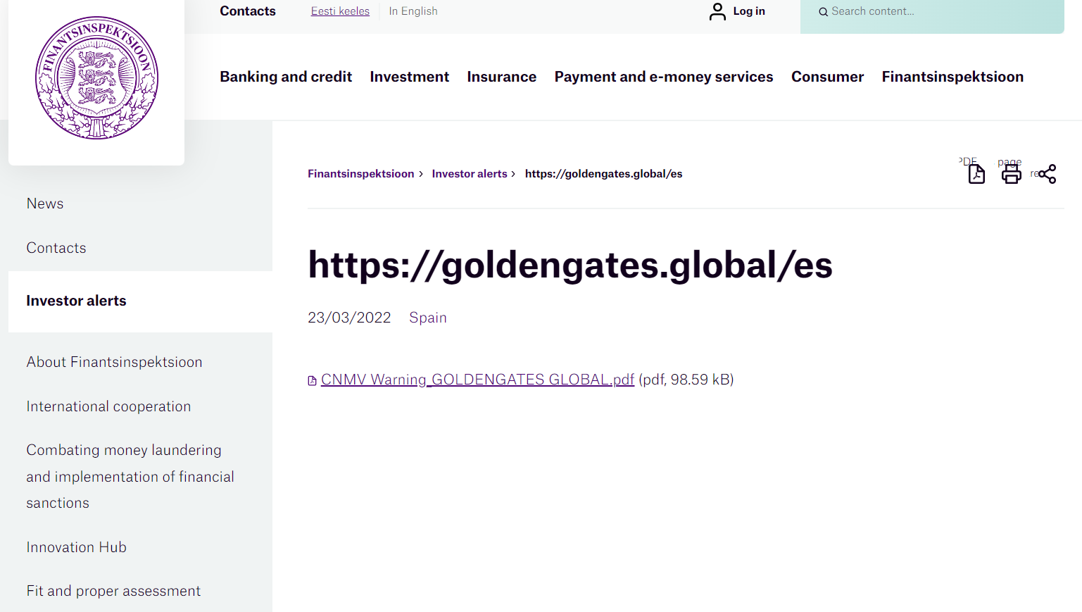 Investor alerts Finantsinspektsioon Investor Alert