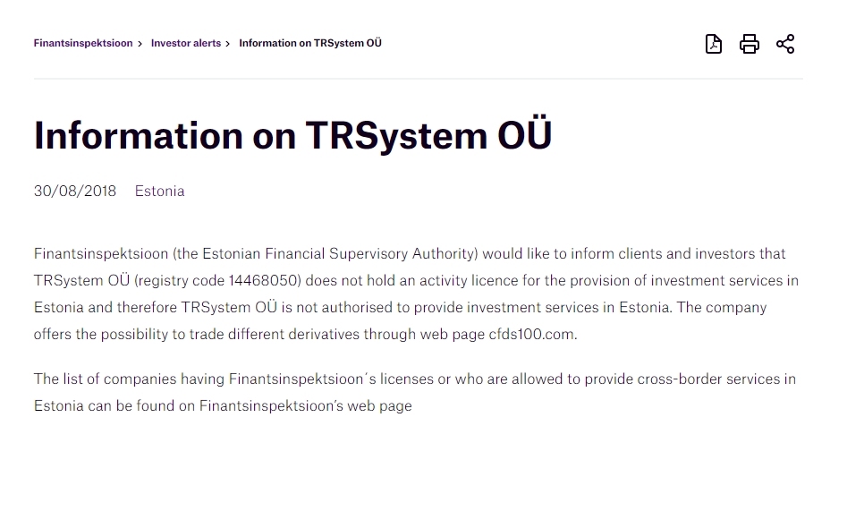Finantsinspektsioon (the Estonian Financial Supervisory Authority) would like to inform clients and investors that GoldTech Media Services OÜ (commercial registry code 14185919) does not hold an activity licence for the provision of investment services in Estonia and therefore GoldTech Media Services OÜ is not authorised to provide investment services in Estonia. The company offers the possibility to trade different derivatives through web page https://www.royalcapitalpro.com/. Finantsinspektsioon has published warnings concerning GoldTech Media Services OÜ also on 09.08.2017 and 26.01.2018.