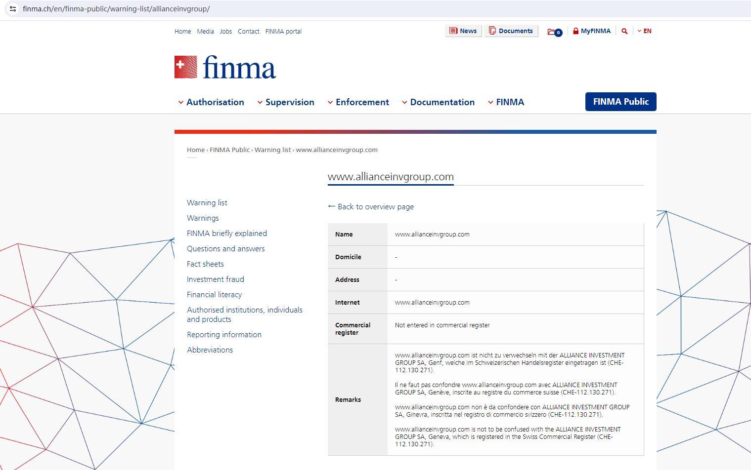 Warning list of unauthorised companies and individuals Warning List - www.allianceinvgroup.com