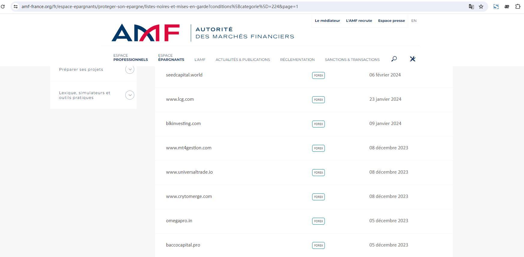This is a list of the Autorité des Marchés Financiers (AMF) blacklisted companies or websites, warnings and/or usurpations of regulated companies.