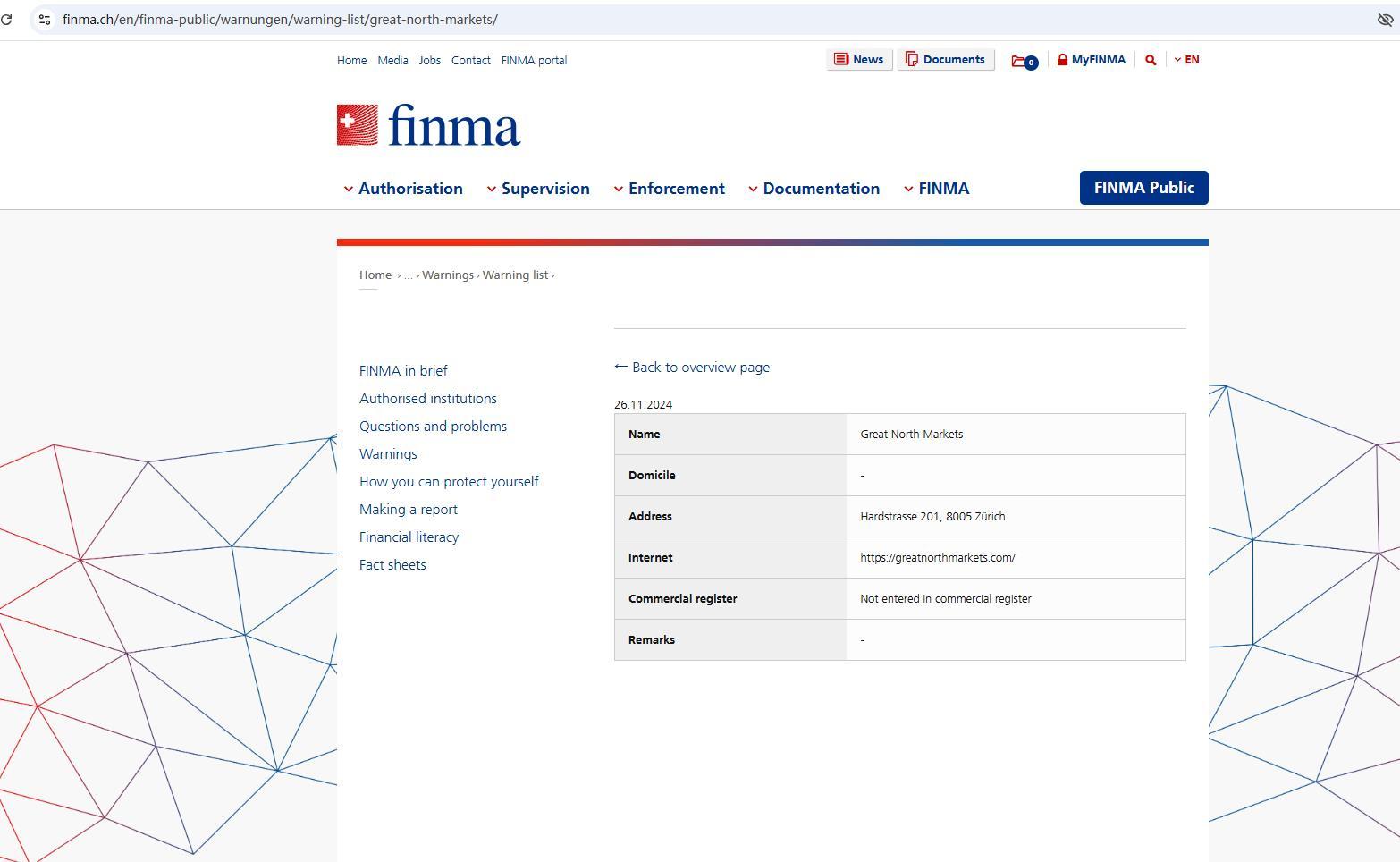 Warning list of unauthorised companies and individuals Warning List - https://greatnorthmarkets.com/