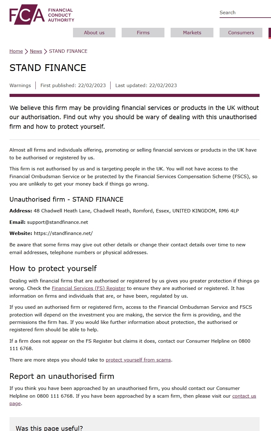 We believe this firm may be providing financial services or products in the UK without our authorisation. Find out why you should be wary of dealing with this unauthorised firm and how to protect yourself.