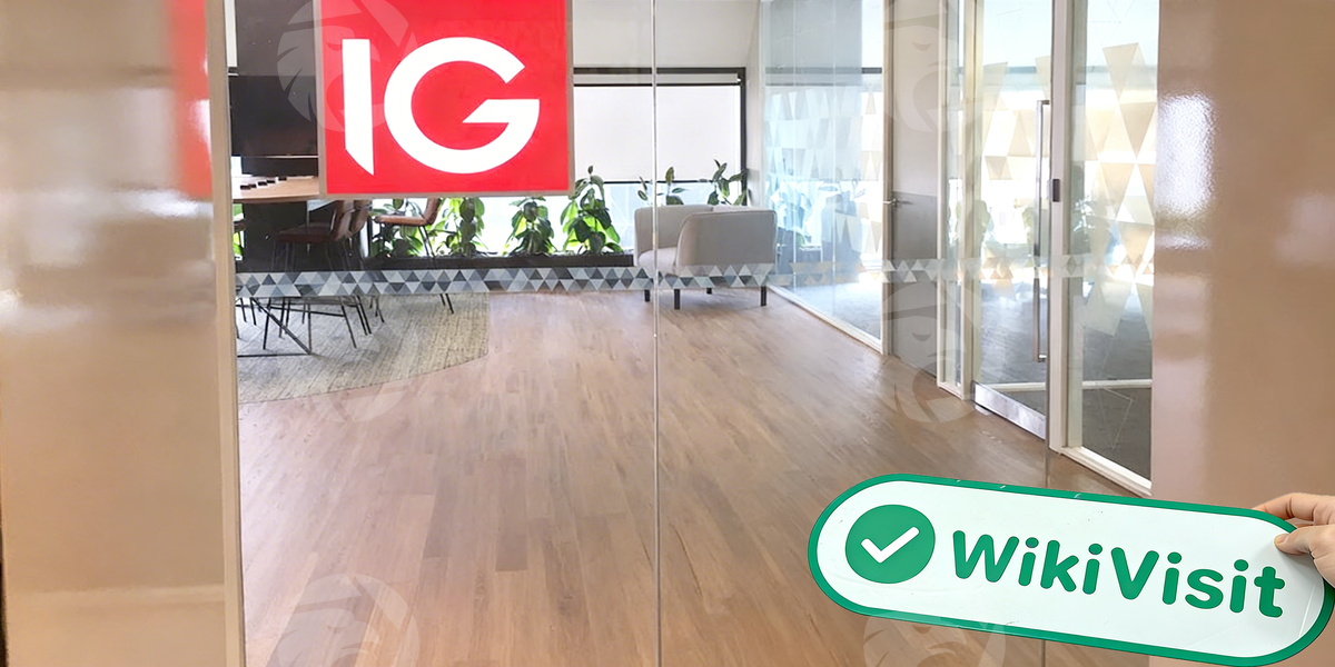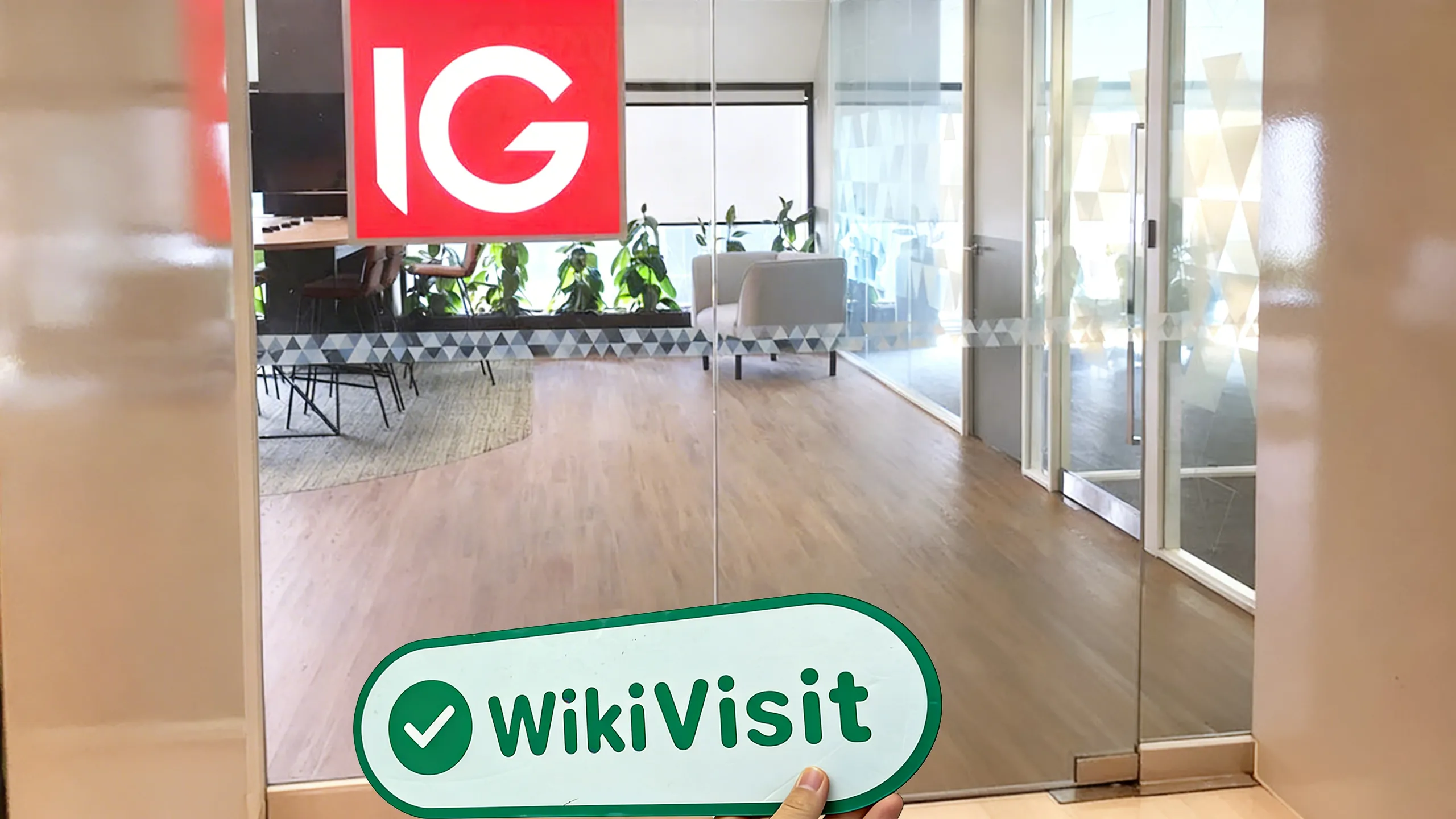 Subsequently, they came to the 15th floor by elevator, on whose electronic screen they noticed the dynamic ad about IG. The moment they got out of the elevator, they saw one of the offices of the broker. They found the office very quickly since the red logo was quite conspicuous. Through the transparent glass door, the inside view of the office area came into their eyes without any reservation.