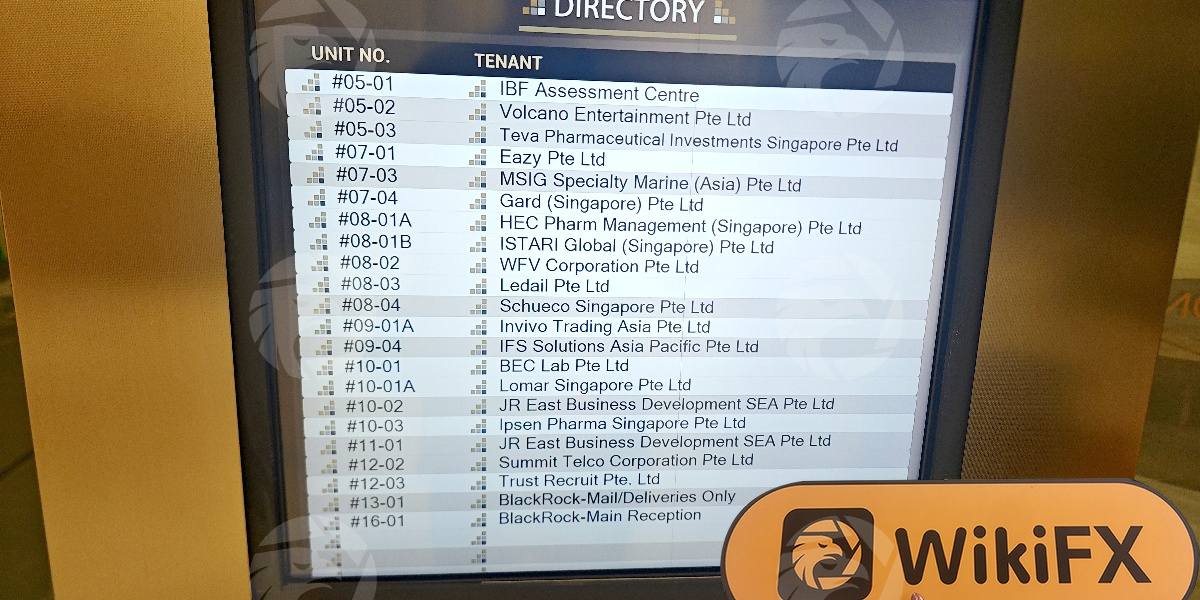 The on-site investigator visited the forex broker Blackrock in Singapore as planned. The broker's company information was visible at the publicly displayed business address, indicating the existence of a genuine operational location. Investors are advised to make their choices after comprehensive consideration.