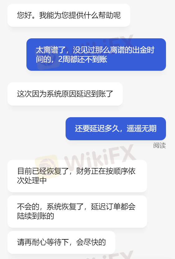 以前出金都是一个工作日到账,现在已经过去三个工作日,平台一直说财务系统在修复