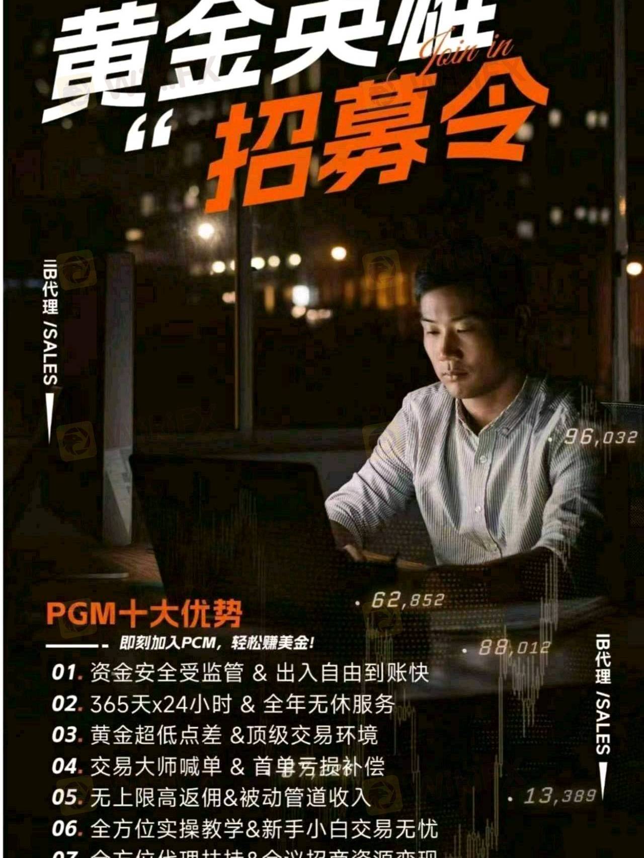 PGM新年活动,总部直招销售代理交易团队,喊单亏损补偿扶持