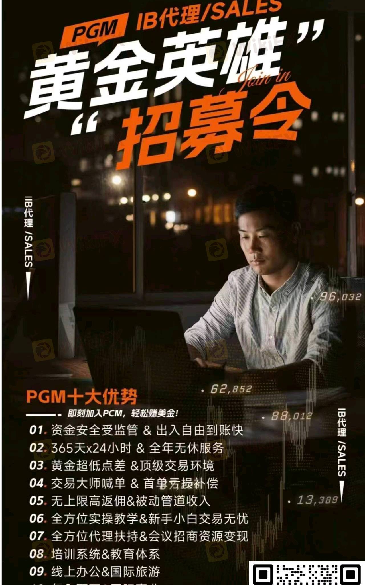 PGM总部直招销售代理交易团队,每日喊单亏损补偿扶持,技术陪跑,办公室补贴,黄金点差低,高返佣
