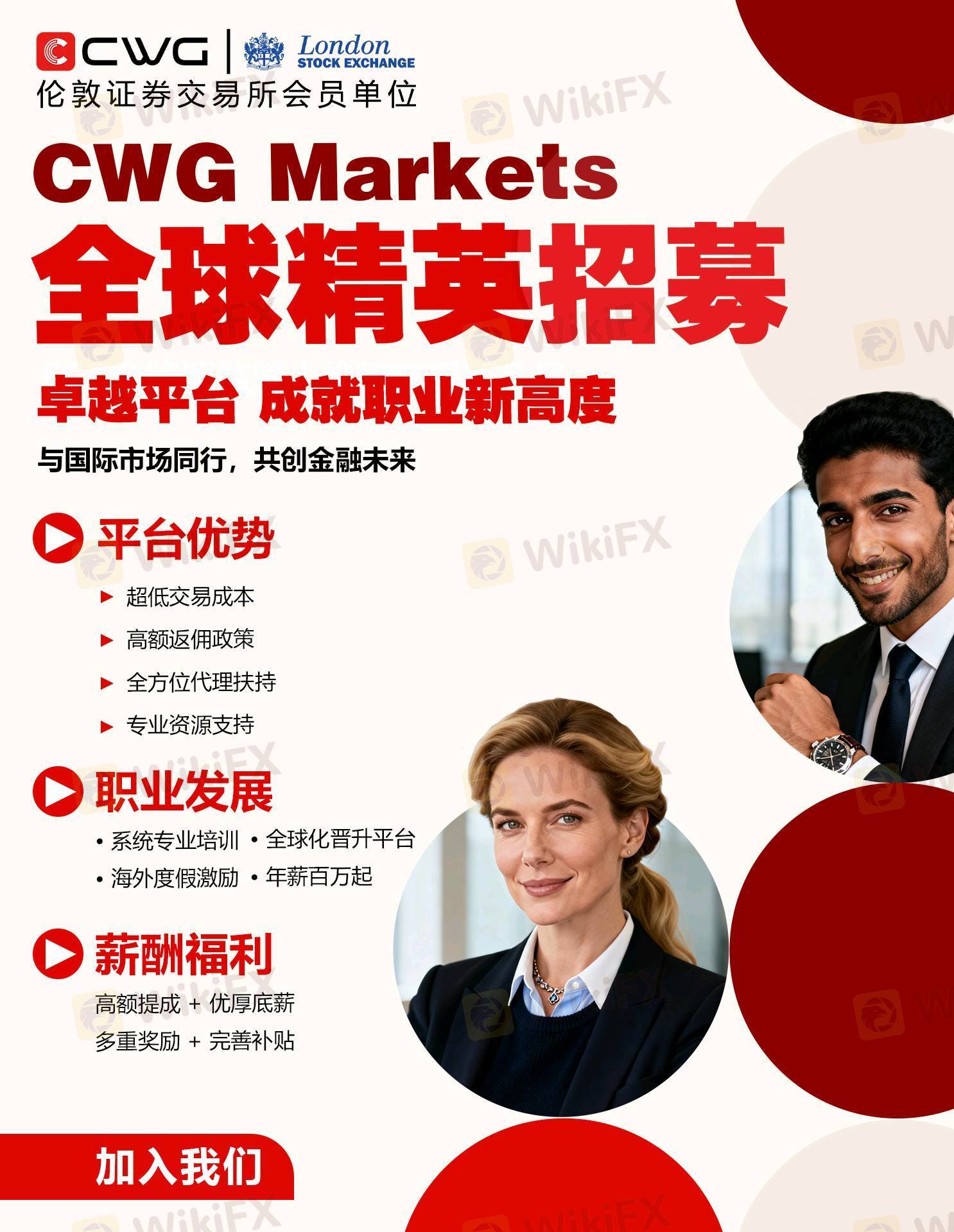 CWG总部直招销售代理交易团队,提供跟单社区,黄金点差低,高返佣,多种账户类型,新疆客户享30%赠金