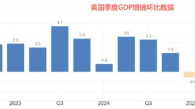 ATFX汇评:今日21:30,美国商务部将公布有关美国三季度GDP的一系列数据,其中最受市场关注的是三季度GDP年化季率初值,也就是环比增速数据。该项数据的前值为3.8%,市场预期值3.3%,降幅0.5个百分点,表明市场预期偏悲观。▲ATFX图历史数据看,今年二季度,美国的GDP环比增速高达3.8%,远超一季度的负0.6%,创出2023年四季度以来的最大值。这会令市场认为特朗普的关税政策对美国宏观