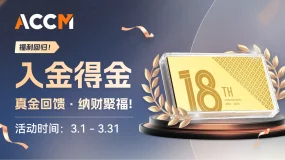 2026年,ACCM新春献礼特别推出入金得金活动。活动当月净入金达标,即可领取专属好礼。每档好礼均含ACCM18周年纪念金钞一份。入金越多,礼遇越丰,让您的财富与我们的祝福同行!活动时间:2026年3月1日–2026年3月31日参与条件:净入金达标 + ≥1手交易,即可获得实物奖励,每档奖励均含ACCM18周年纪念金钞一份。各档位净入金要求及礼品清单如下:档位A生活品质礼:苏泊尔手持熨烫机、小米R