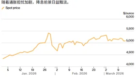 ATFX:由于美元走强以及中东持续不断的战争推高了油价,在通胀担忧打压降息前景的情况下,黄金价格周线势将连续第二周下跌。今日亚市盘中,金价小幅突破每盎司5100美元,逢低买盘涌入市场,但仍可能录得超过1%的周跌幅。▲ATFX图对于黄金而言,能源价格上涨和通胀担忧加剧,大大降低了市场对美联储和其他央行降息的预期。昨日公布的美国初请失业金人数下降1000人至21.3万人,表明劳动力市场状况仍保持稳定,