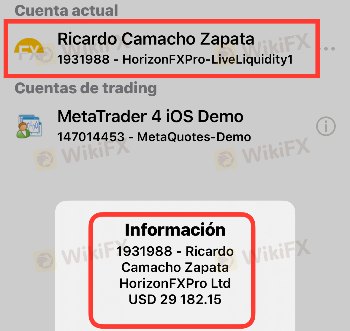 Actualmente mi cuenta sigue activa en MetaTrader 4 con el Broker HorizonFxPro