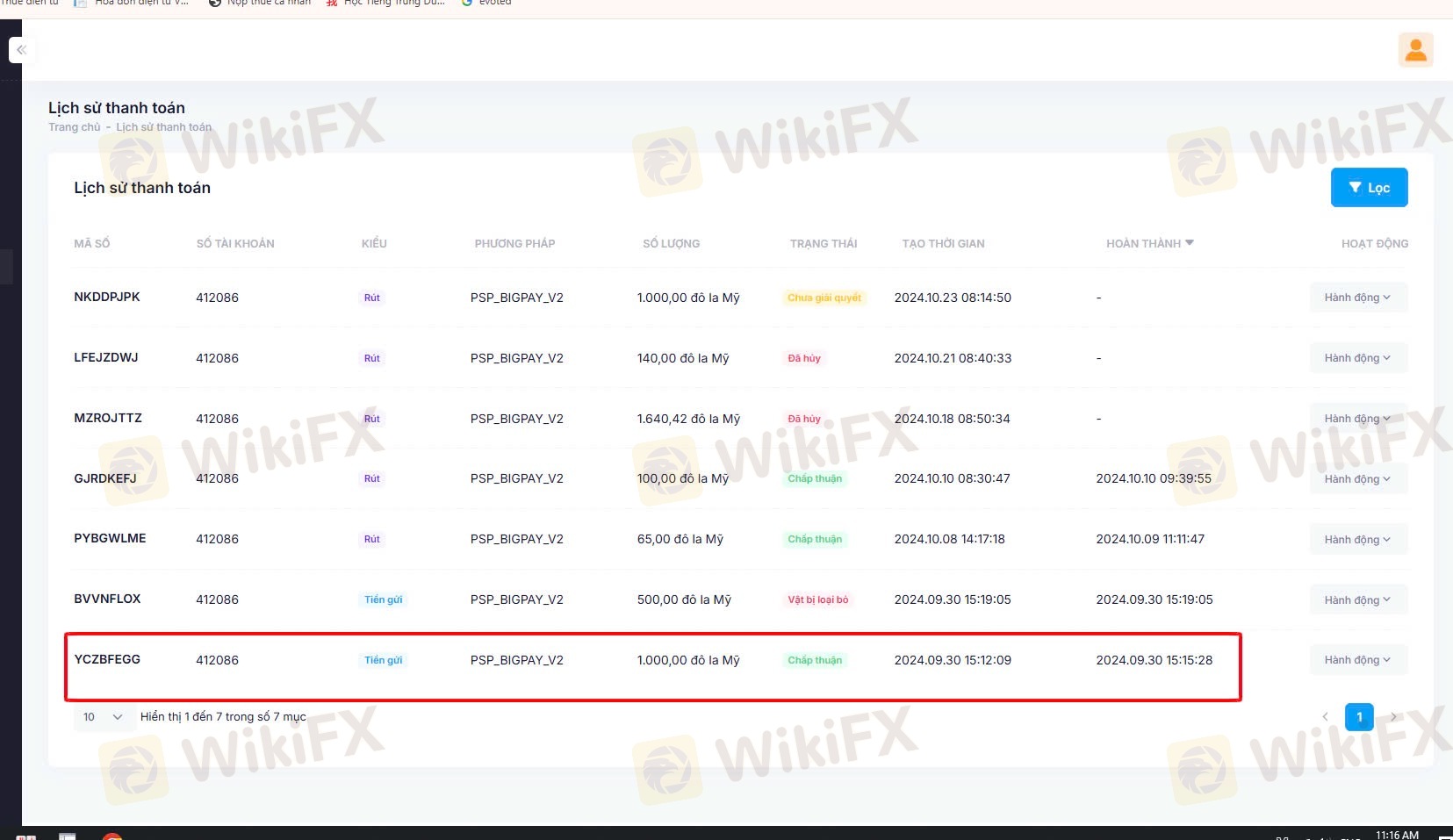 tôi là nhà giao dịch có id mt4 412086 Tôi có nạp 1000$ vào tài vào ngày 30-9 đến khi tôi làm lệnh rút từ 18-10-2024 đến hiện tại 05-11-2024 mà sàn vẫn chưa có dấu hiệu hay động thái cho tôi rút tiền yêu cầu sàn hoàn trả tiền cho tôi nếu không tôi sẽ tố có về hành vi chiếm đoạt tài sản của sàn