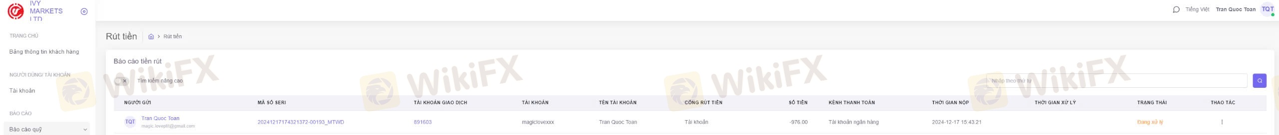 tôi đặt lệnh rút tiền từ 17/12/2024 đến nay sàn chưa xác nhận. xin hãy giúp tôi rút tiền từ ivymarket