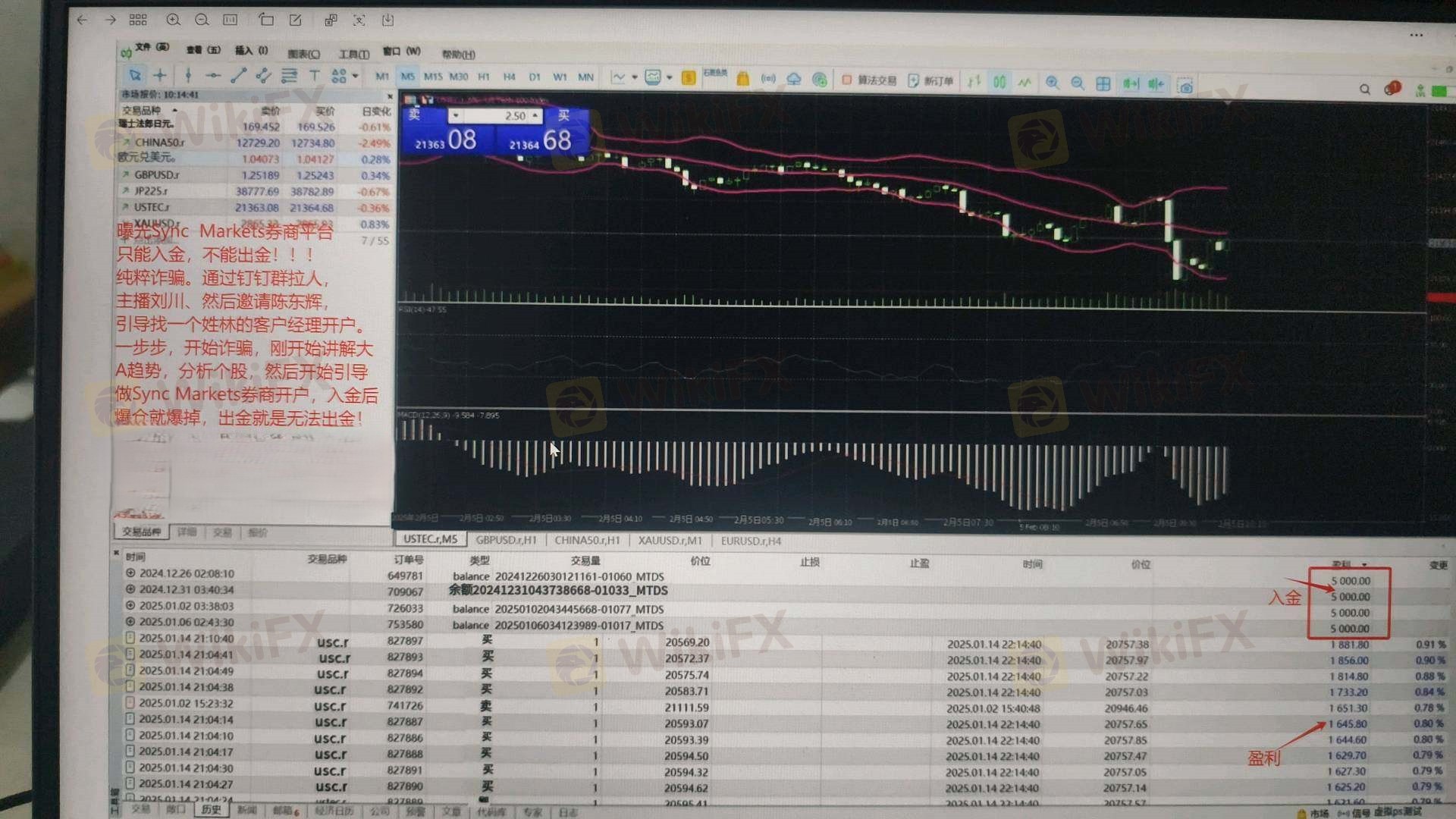 Sync Markets券商平台只能入金,不能出金。 1、本人所有操作均为手动操作,该平台通过邮箱说存在违规操作,无法找出违规依据。后续开始威胁,不予出金。 2、2W美刀入金后,尝试出金(2025.01.15)被延迟到2025.02.05依然无法出金。 3、刚开始发送邮件阻止出金,到2025.02.05关于出金事宜,开始以邮件形式进行威胁