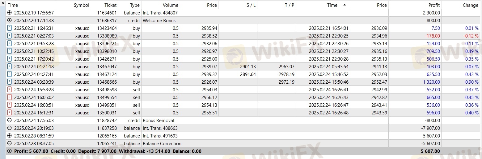 Following this, I requested a withdrawal of my total balance. However, after 5 days, the broker only returned my initial deposit of $2300 and deducted the $5609 profit without providing any reason.