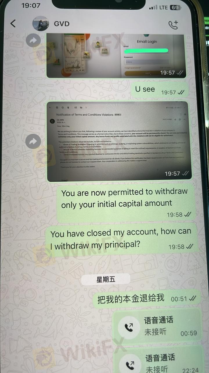I met GVD Markets at a forex expo in Dubai and opened an account after completing full KYC. When I submitted a withdrawal request, they delayed it for over two weeks and suddenly asked for a Dubai bank account, address proof, and a new KYC video — even though I had already passed verification. I followed all their unreasonable demands. After 19 days, they claimed I made “irregular trades,” closed my account, and said I could only withdraw my principal. I agreed just to get my money back — but then I was locked out of my account completely. No response from support, emails, or the broker. My funds are gone. GVD Markets is a pig-butchering scam platform. They lure victims through expos, wait until funds are deposited, then freeze accounts and disappear. Stay away from GVD Markets! This is not a trustworthy broker — it’s a well-organized fraud.