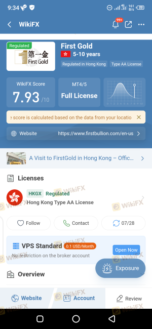 First Gold appears to be a regulated and experienced broker with a decent overall rating, offering popular trading platforms and a low-cost VPS service.