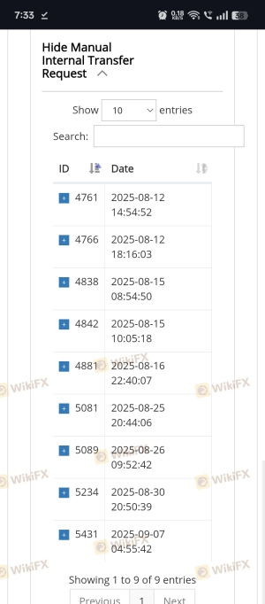 20 times I submitted MT5 to Wallet transfer requests
