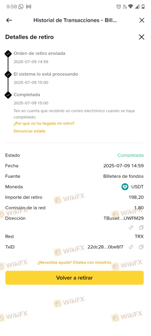 CREÉ UN PERFIL EN ESTE BROKER, HICE TODO LO QUE SE SUPONÍA QUE DEBÍA HACER PARA VERIFICARLO, DESPUÉS REALICÉ UN DEPÓSITO DE 200 USDT, PORQUE QUERÍA EMPEZAR A MULTIPLICARLO, CUANDO DE LA NADA FUE DETENIDO POR LA MISMA PLATAFORMA, REALMENTE LLEVO MUCHO TIEMPO TRATANDO DE QUE POR FAVOR ME DEVUELVAN EL DINERO QUE TIENEN DETENIDO POR EL PROVEEDOR DE PAGO, BINANCE ME HA AYUDADO Y ME HAN DICHO QUE COLOQUE UNA DENUNCIA PERO YO VIVO EN UN PAÍS AL QUE NO PRESTAN MUCHA ATENCIÓN EN ESTAS COSAS, YA INTENTÉ TODAS LAS FORMAS POSIBLES RECUPERARME DINERO QUE AUNQUE PARECE QUE NO ES MUCHO, EN COLOMBIA SON CASI 900,000 PESOS COLOMBIANOS, ESPERO QUE USTEDES PUEDAN AYUDARME YO HE HECHO LO POSIBLE HABÍA YA DESISTIDO, PERO SÉ QUE PUEDO RECUPERAR EL DINERO. HE TENIDO LA OPORTUNIDAD MIL VECES DE ENVIARLES LA DIRECCIÓN DE TxID pero ellos siguen negando que tienen el dinero, y lo único que hacen es sacar excusas... por favor ayúdenme