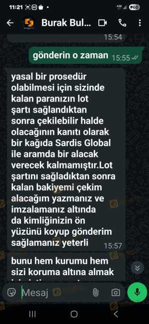 B hesap numarası ve Sardis Markets aracı kurumu ile işlem yapıyorum. Hesabımda şu anda yaklaşık 6.149 USD bakiye bulunmaktadır. Aracı kurum, "lot iadesi/iptali" gibi çeşitli bahaneler öne sürerek ve "fiyat bankası (META)" tarafından yapıldığını iddia ederek bakiyemi ödemekten kaçınıyor. 200 lot limiti talep ediyorlar. Bana herhangi bir somut işlem kaydı veya geçerli bir gerekçe sunmadılar. Durumun ayrıntıları, tüm yazışmalar ve hatta dolandırıcılar tarafından kullanıldığı görünen cümleler aşağıdaki gönderide gösterilmiştir. Platform: MetaTrader 5 Sunucu: SARDIS MARKETS Aracı Kurum: Sardis Markets Mevcut bakiye (yaklaşık): 6.149 USD İlgili ekran görüntüleri ve belgelerle birlikte aynı şikayeti size iletiyorum ve yasal haklarımı takip etmeden önce desteğinizi rica ediyorum. Bu şikayetin ardından hesabım şirket tarafından kapatıldı.