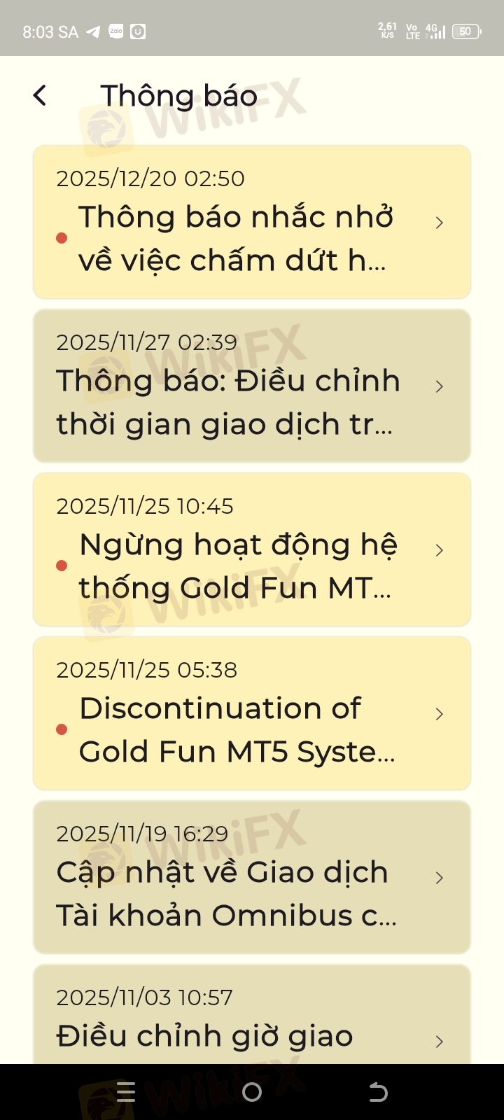 成立于2016年,Gold Fun是一家由CGSE监管的金融公司,总部位于中国香港。它提供多种服务,包括熔炼服务、钻石珠宝、12kg金锭、纯金条、实时交易软件、黄金期货、存储服务、量身定制交易、GF黄金交易、黄金投资、矿石黄金。