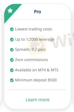 微账户:专为MT5用户设计,该账户专注于货币、贵金属、能源和指数,平均EUR/USD点差为1.1点,无佣金。