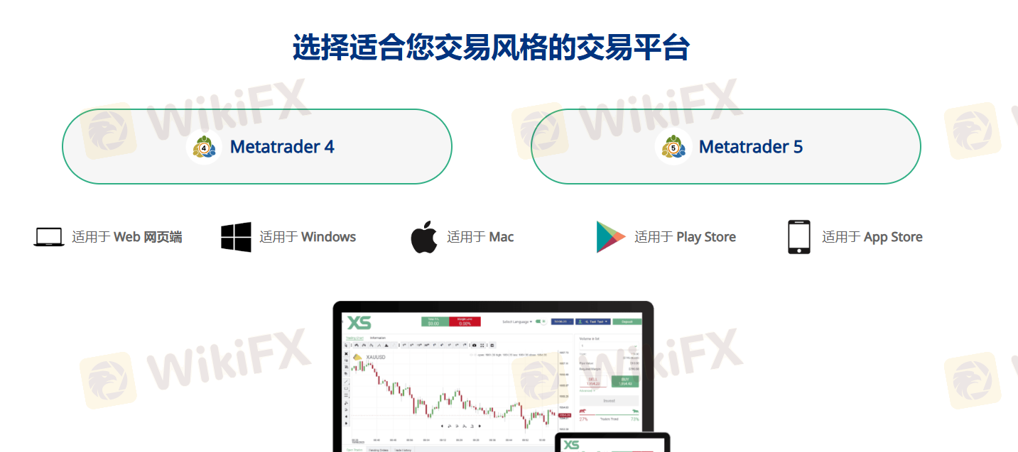 | 交易平台 | MT4,MT5,XS Web Trader,XS Trader Mobile App |