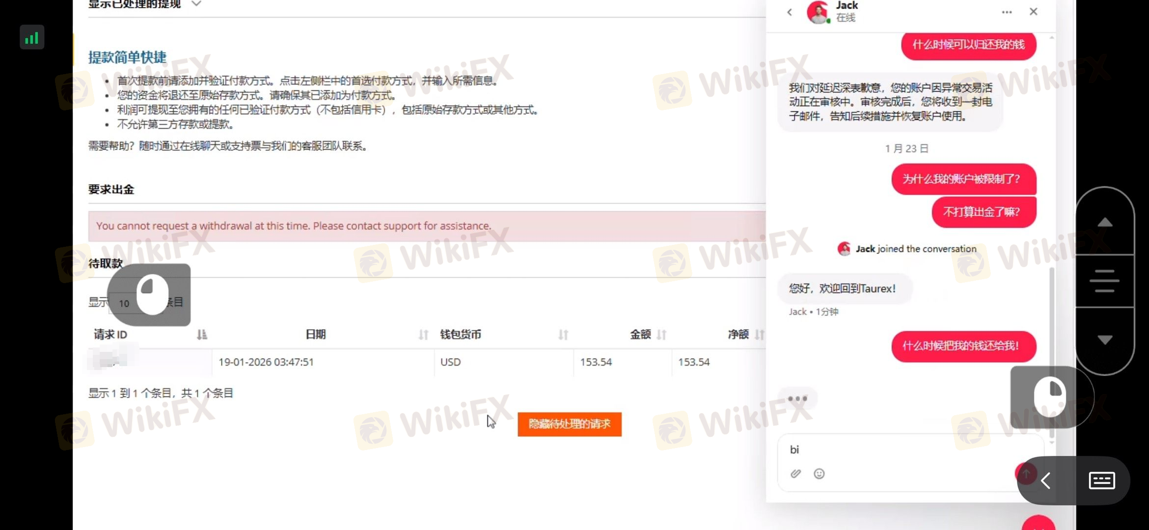 mt4:4113440,邮箱h01016@163.com 投诉平台taurex擅自修改客户交易价格,成交以后取消利润 本人于4.3号进行了手工Uk100指数交易,单纯看多下单,持仓时间十几分钟,获利清仓。然而平台却告知本人交易单子并未在价格成交并且修改交易价格取消利润,实在是黑平台行径。 首先,如果我没有在那个价格成交为何我的单子显示成交有利润,除非平台是对赌平台看见客户盈利后取消单子利润修改价格,还能修改成交的价格,实在是令人深思 其次,如果平台真的有把我的单子按价格抛出市场,如果提供,本人自愿按平台后面修改的价格成交 最后,希望是误会,平台补回利润给我,如果不补回实在是黑平台修改客户成交价格取消客户利润对赌只能亏钱不能盈利大家敬而远之。本人会更新账户情况,出金之前没有处理请各位慎重选择taurex进行交易。