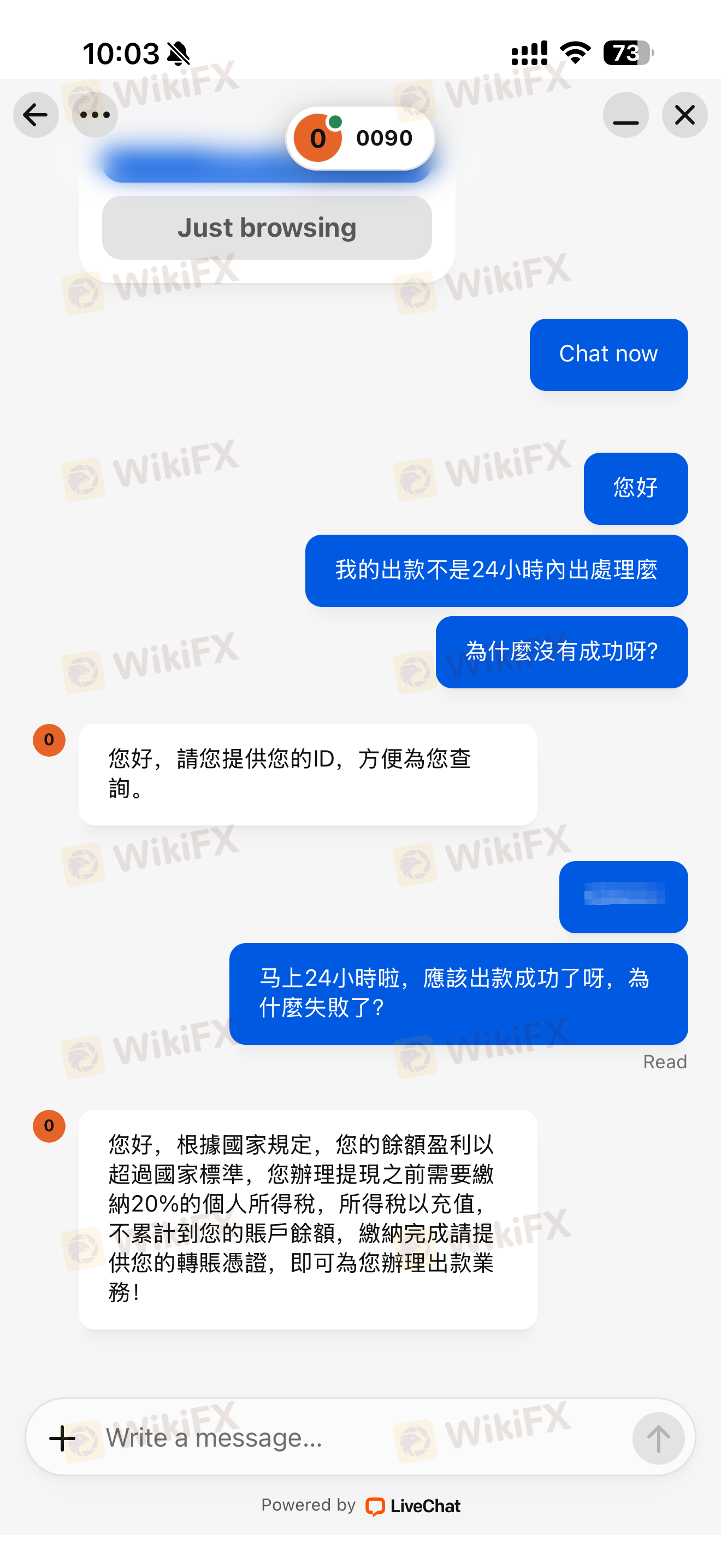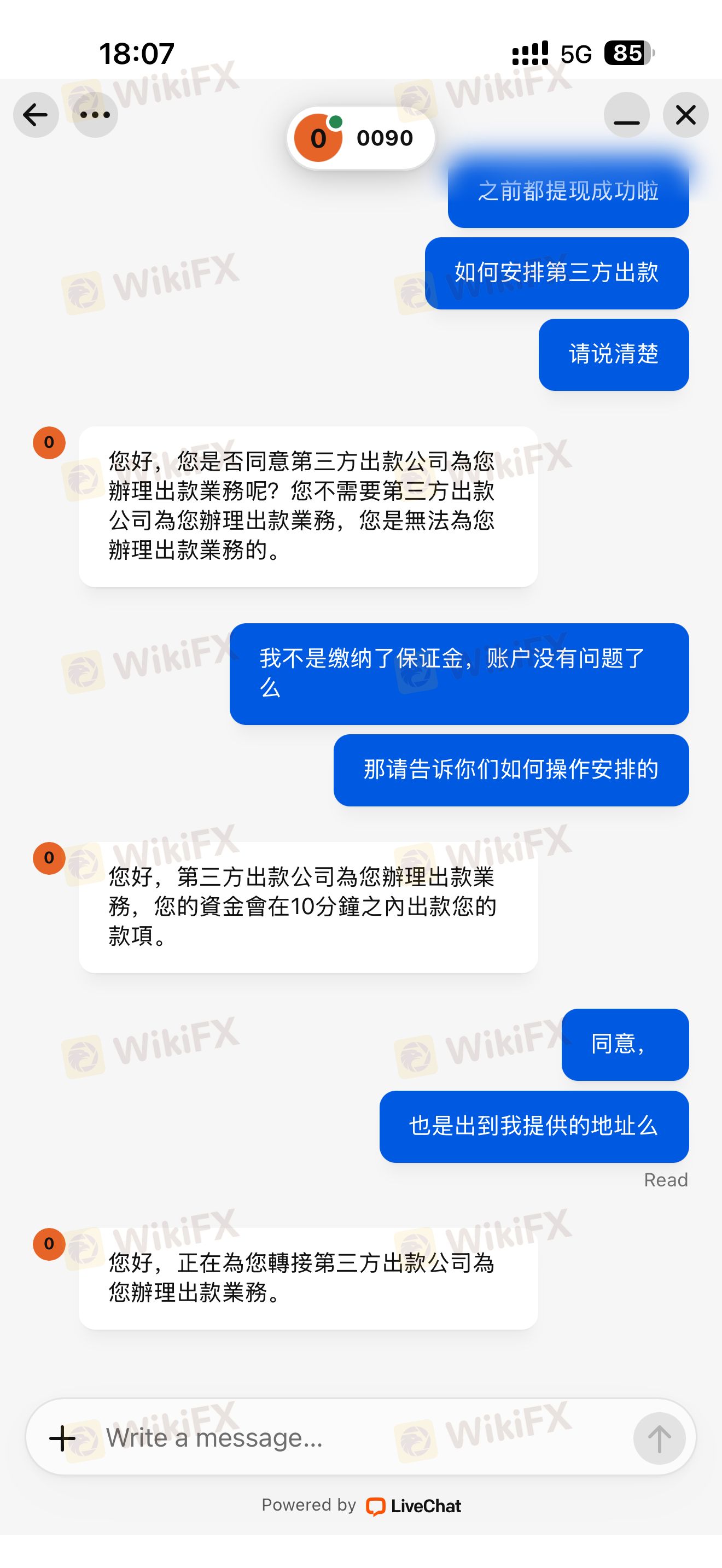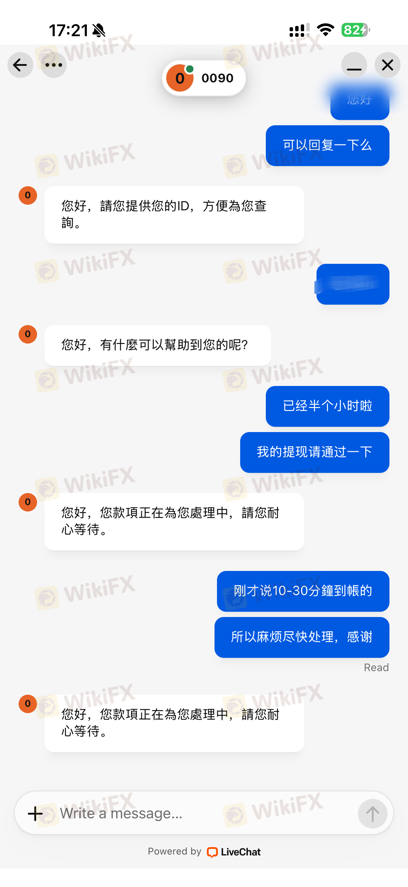 在一个小时之内迟迟不给我出金,然后我询问过他两次,他说请我耐心等待,如果不能出金,为什么一开始就不不说呢?就可以告诉我原因呀。
