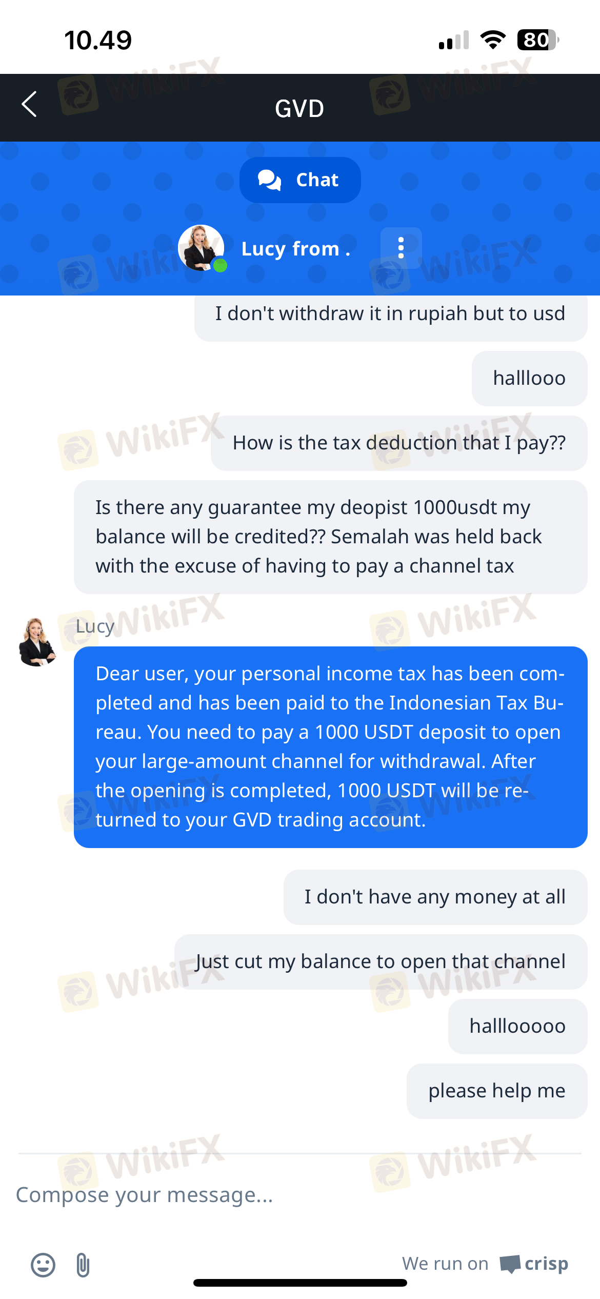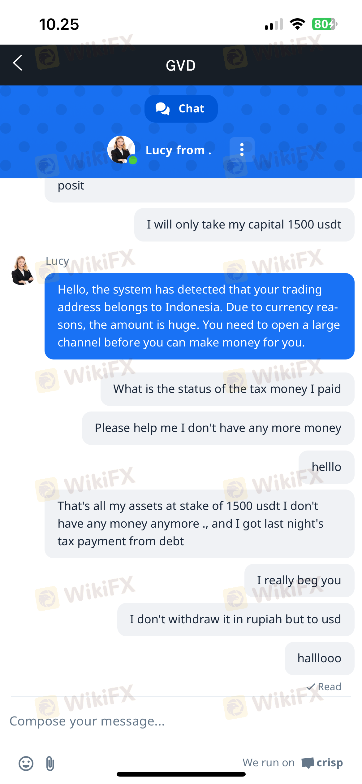 我在GVD平台上遇到了恶意的锤头线,导致了强制平仓。市场价格加上点差没有达到我的强制平仓价格。我与客服和经理进行了沟通,但没有得到回复,所以我向平台投诉。结果,我的账户在第二天被封锁了。如果这不是一个骗局平台,那它是什么!