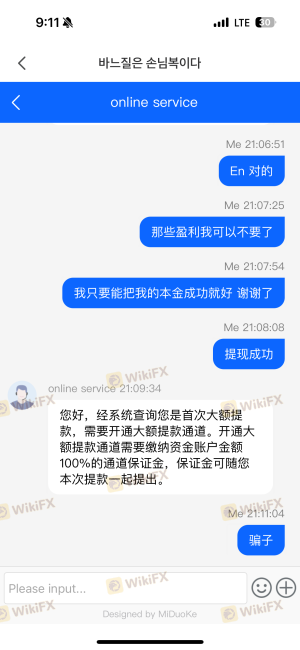 我打算出金 7000美元 告诉我让我缴纳盈利税 我交了 之后还是不让我出金 说什么大额提款需要缴纳保证金 总之无法出金 我之前交了一次保证金 客服说交一次就可以 这次还让我交 严重怀疑欺诈