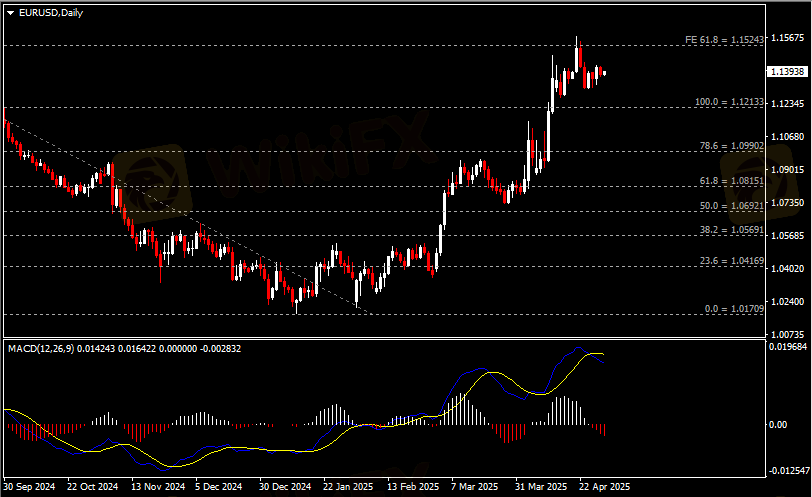 日线图显示欧元兑美元小幅下跌,当前承压于1.1520阻力。从MACD来看,快慢线拐向下行,红色动能柱温和放量。汇价走势基本和动能柱的变化一致。