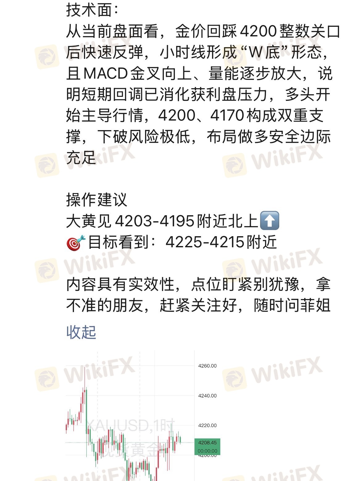 业内12.10亚盘黄金XAUUSD最新走势分析💙技术面: 从当前盘面看,金价回踩4200整数关口 后快速反弹,小时线形成"W底"形态, 且MACD金叉向上、量能逐步放大,说 明短期回调已消化获利盘压力,多头开 始主导行情,4200、4170构成双重支 撑,下破风险极低,布局做多安全边际 充足。