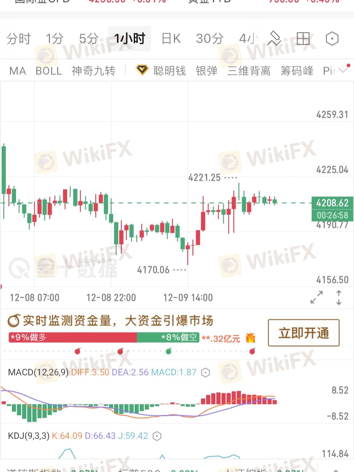 • 价格走势:1小时图中金价在4170触底后反弹,目前在4208附近横盘,上方4221为近期压力位,下方4207为短期支撑位。