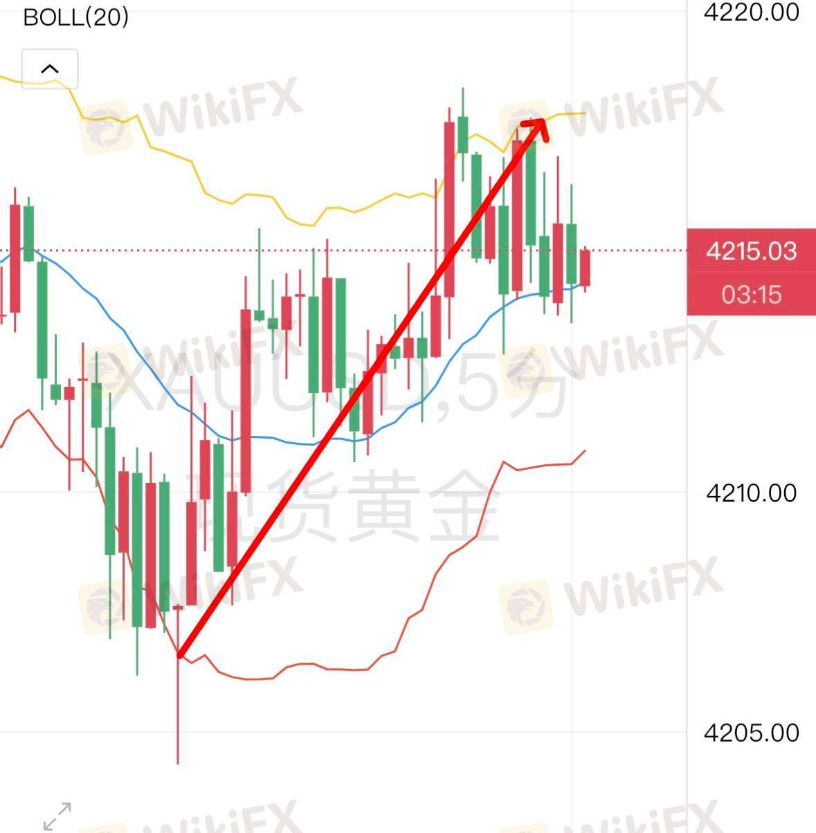 午后行情进入震荡修复阶段,小时线回撤至凌晨压力转换位 4205 附近时,分批布局多单,截至当前价格触及 4215,多单顺利止盈兑现收益。