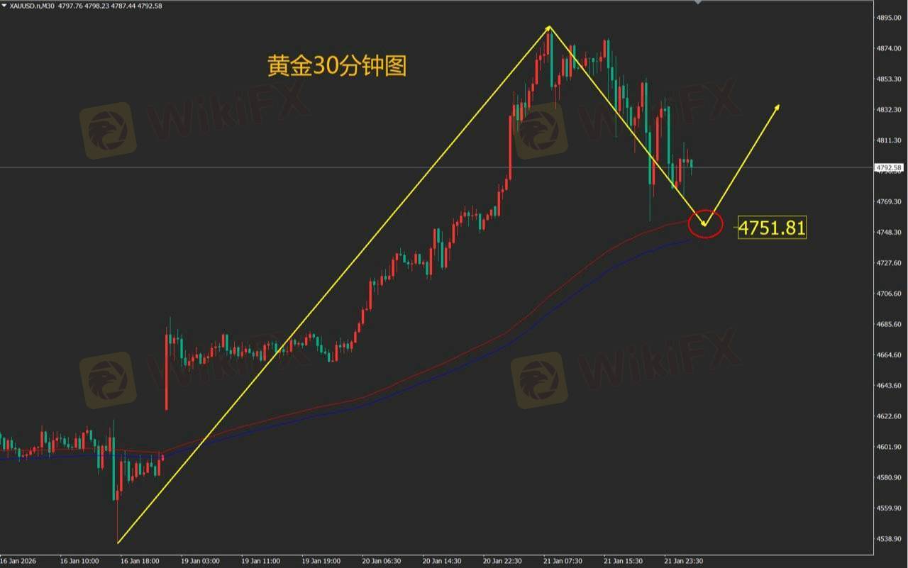 技术面上,关注30分钟维加斯通道支撑位,点位在4750-4760附近,这个位置也是昨天的开盘价附近,回调此处有支撑,可以逢低做多。