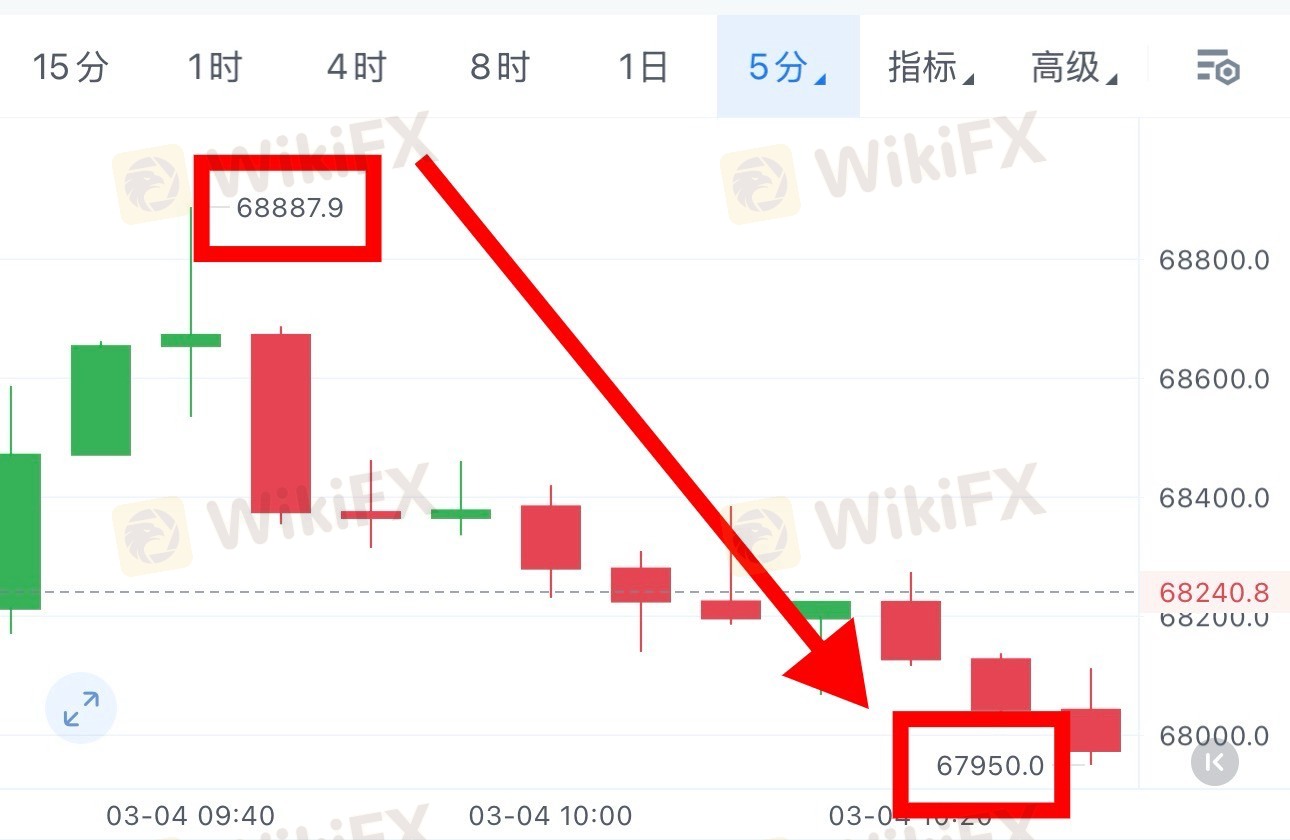 盘面实际走势完全符合预判:行情反弹至68887便遇阻承压,随后开启回落下行,最低触及67950,整体走出近千点下行空间,策略与行情高度契合。