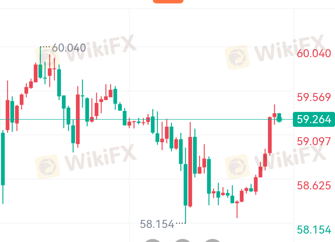 午间油价再度测试前低后快速插针反弹,小时线录得4连阳,多头动能持续释放。短期上方关注59.36、59.64两道压力位,若有效突破,有望延续上行节奏冲击前高60关口。