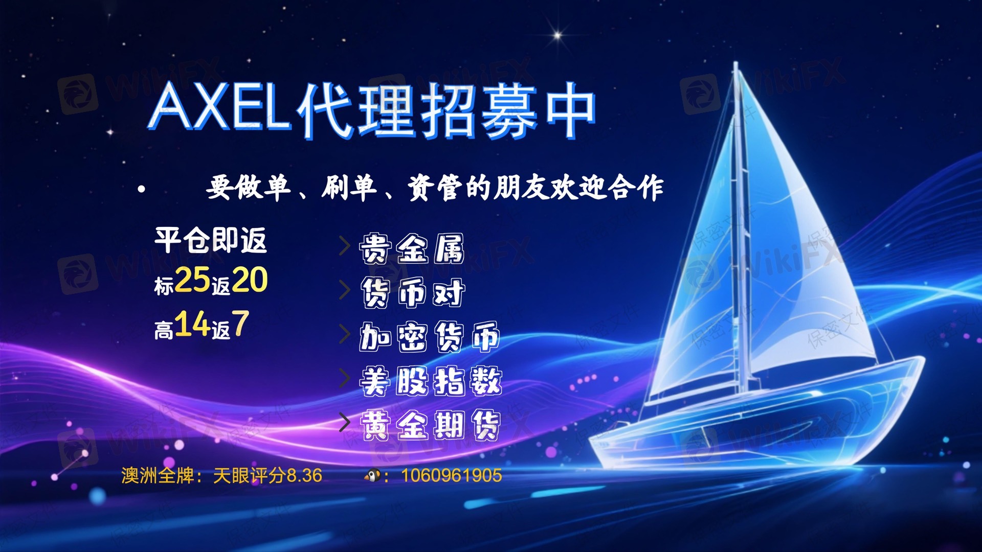 AXEL 代理招募中,有想开通最高权限的代理可以联系我,平台出入金高效,至高返佣和待遇业内领先,支持多货币、加密货币、美股指数和黄金期货等多品种交易。24小时在线服务,有任何问题第一时间联系即回复,欢迎咨询对接!如果你刚好在找平台,不妨给个机会我们一起成就。🤝