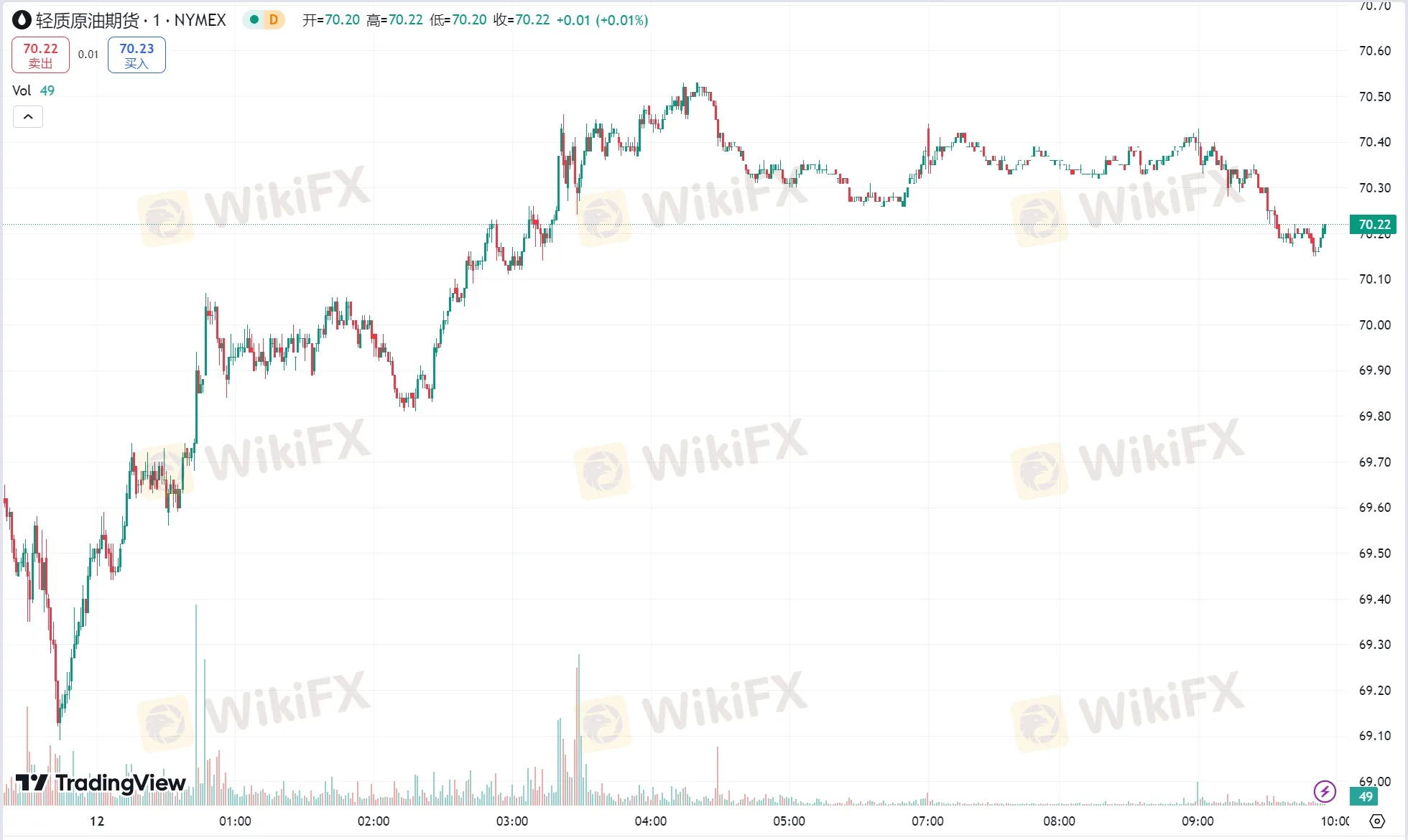 周三,因欧盟同意对俄罗斯石油出口实施新一轮制裁,或会使全球原油供应趋紧,美油期货收涨约 2.5% 站上 70 美元大关,布油期货涨近 2%。截至收盘,WTI 1月原油期货涨 1.70 美元,涨幅约 2.5%,报 70.29 美元/桶;布伦特 2 月原油期货收涨 1.33 美元,涨幅 1.84%,报 73.52 美元/桶。