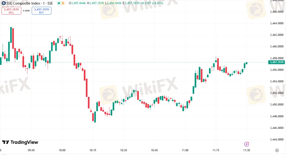 沪指涨 0.07%,报 3,457.36 点