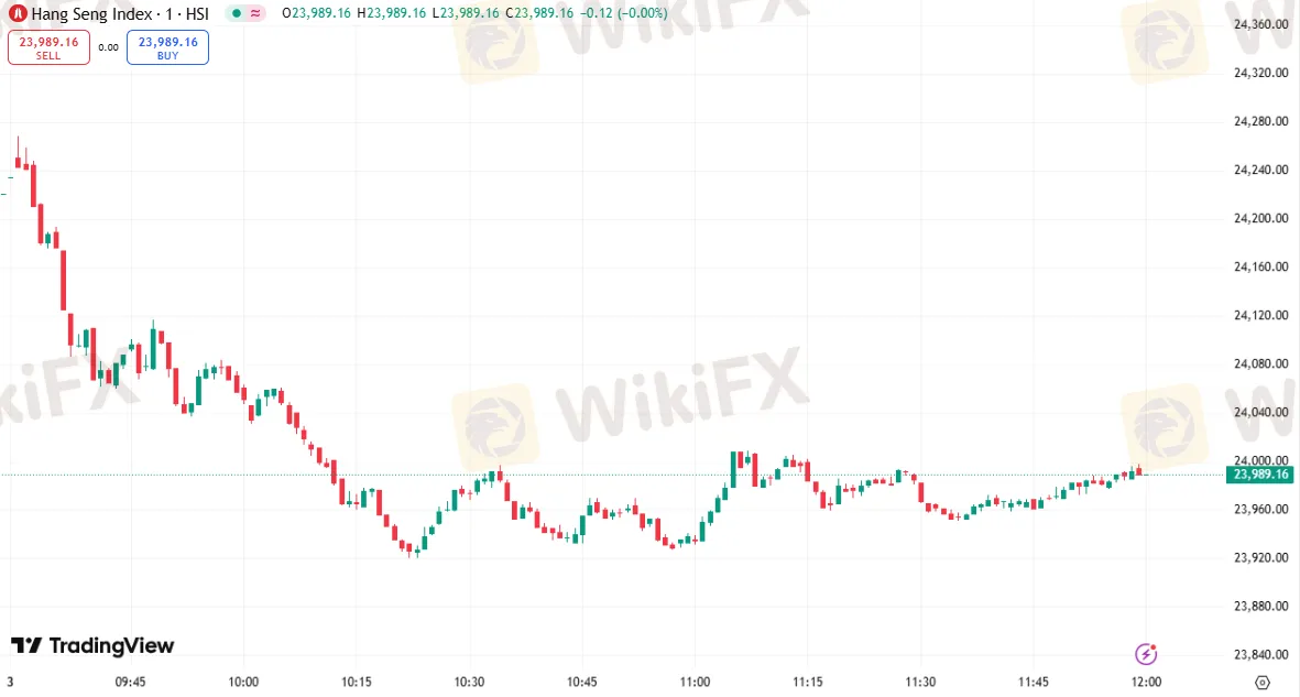 恒生指数跌 0.96%,收报 23,989.16 点
